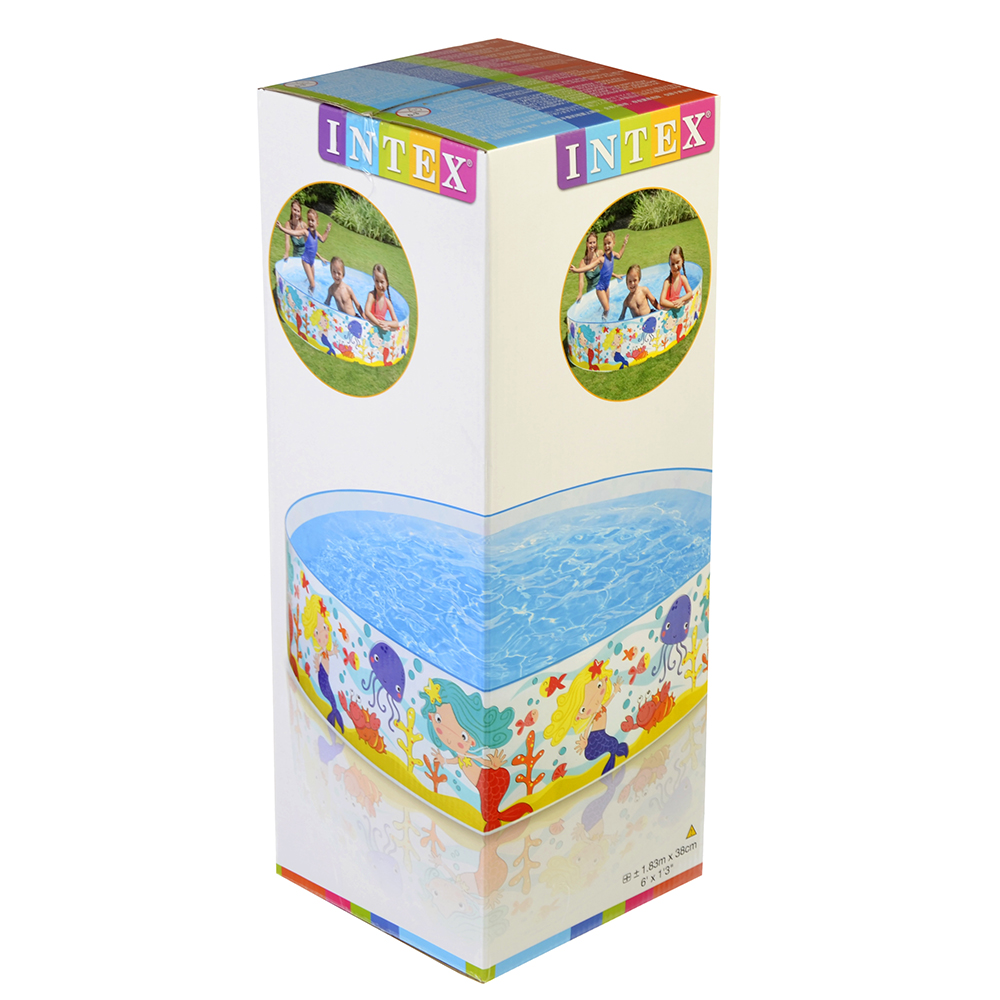 Детский бассейн "Русалочка" Intex 58458 183x38 имеет жесткие стенки и отлично подойдет если у вас есть животные. Набрать бассейн можно при помощи садового шланга, а чтобы спустить нужно надавать на одну из стенок. В этот небольшой по виду бассейн вмещается почти 1 тонна воды! Яркий дизайн понравится вашему ребенку.