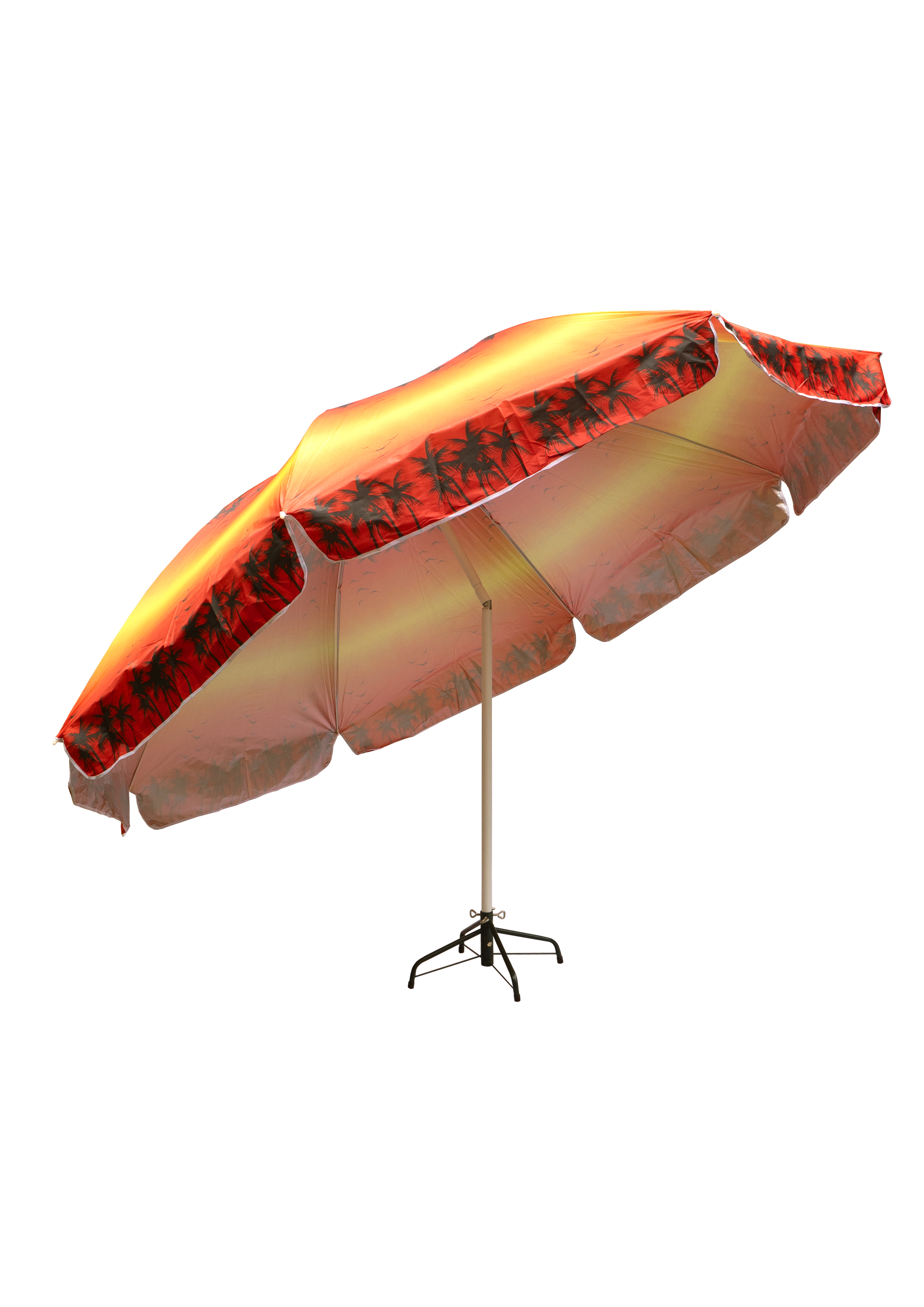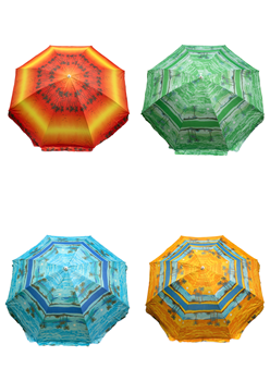 Зонт пляжный фольгированный (240 см в диаметре) 12шт/упак - надежное укрытие от солнечных лучей. Качественный металлический карскас с наклоном. Купол пляжного зонта выполнен из водонепроницаемого полиэстера, с внутренней стороны купол фольгирован, поэтому солнечные лучи отражаются. В раскрытом виде размер купола 2,4 метра. В ассортименте 4 расцветки